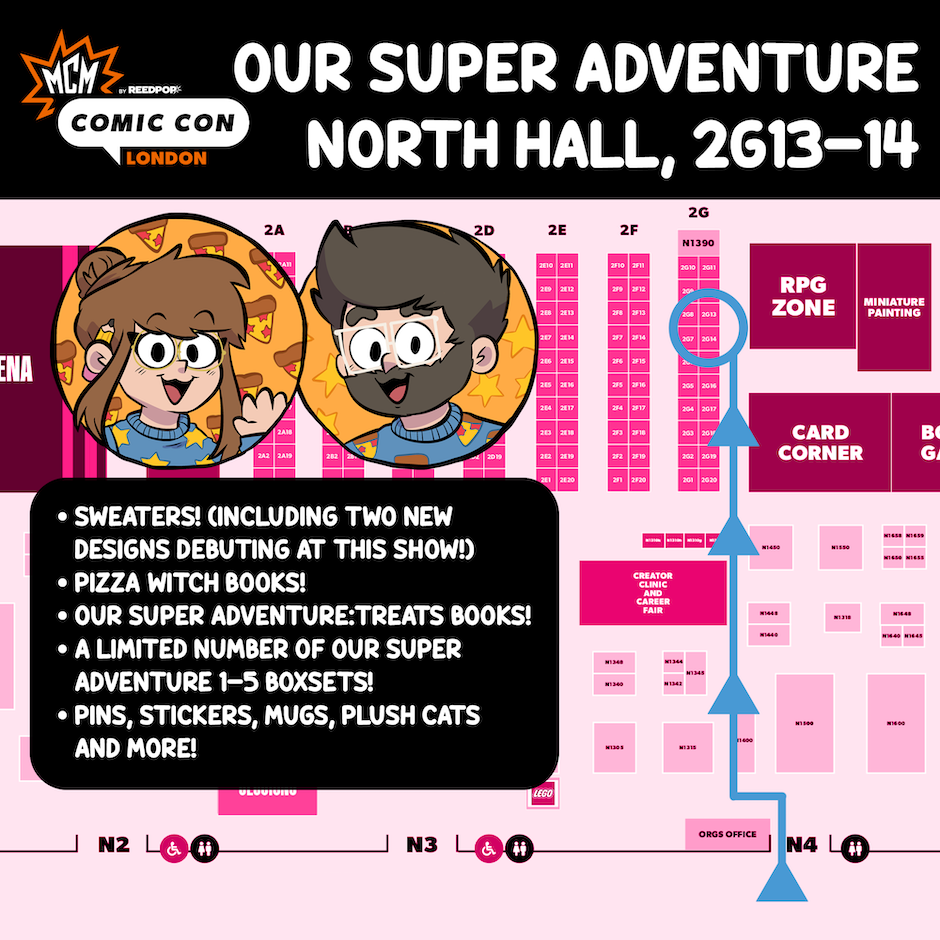 Hey! We're going to be at MCM London this weekend and we'll have copies of Pizza Witch with us! Come get a signed copy in person!